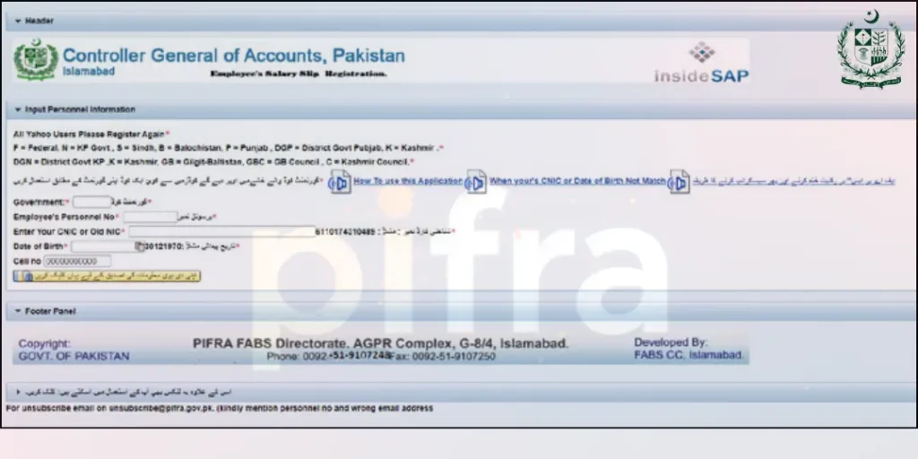 www.pifra.gov.pk pay Slip Registration